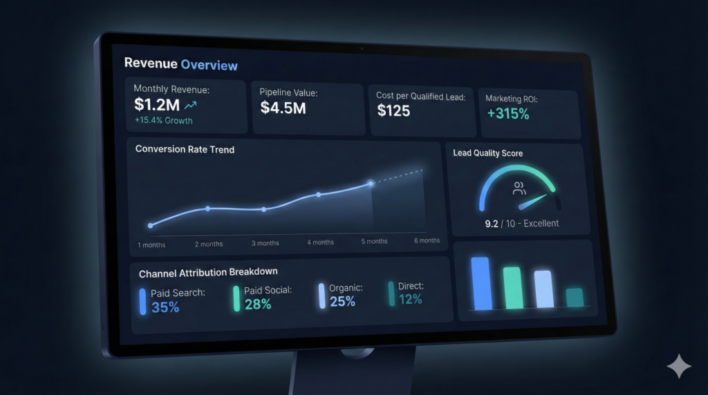 Instead of optimizing one channel in isolation, we design the full revenue engine: roles of channels, tracking fidelity, experimentation cadence, conversion constraints, and reporting governance.
